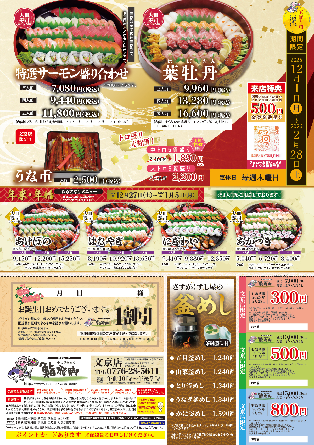 文京店 ,269efa1b-bc0f-47de-9aba-ad753cf22d10,,{"tempId":"light","gmapWidth":"100","gmapWidthUnit":"%","gmapHeight":"450","gmapHeightUnit":"px","gmapZoomLevel":18,"gmapScrollWheel":false} 文京店 ご注文はこちら⇒0776-28-5611 営業時間:午前10時〜午後8時30分(電話受付は午前9時から。午後1時30分〜午後3時30分は準備中) お正月メニュー 文京店 12月27日~1月5日まで 旬 文京店 12月1日~2月28日 各メニュー 画像をクリック 各店舗 ページトップへ